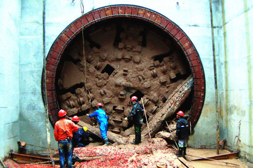 自去年10月10日“井冈山1号”盾构始发以来,该公司机械化分公司盾构队149天连续24小时施工作业,克服了地质突变、隧道埋深、地面荷载、地表沉降、盾构机姿态、刀盘扭矩、千斤顶推力等重重困难和不利因素,盾构队加强现场管理,坚持领导带班制,安排一名副经理常驻现场,并配齐队长、技术、施工等管理人员,确保现场工作衔接;严格按设计组织施工抓好工程质量,加强安全教育,施工进度不断加快,创造了日拼装管片12环最好记录;采取“超环奖”激励措施,确保每个班每日完成定额拼装管片4环以后可以得到每环奖和超环奖;对宝安大道和紧邻隧道的建筑群采取洞内、地面同时注浆加固等措施,及时监控量测周围建筑物沉降并防止洞内出现塌方;同时在竖井口安装了门禁系统,安排管理员24小时值班,随时掌握隧道内施工人员动态,确保了隧道右线475环管片提前22天安全顺利完成拼装。