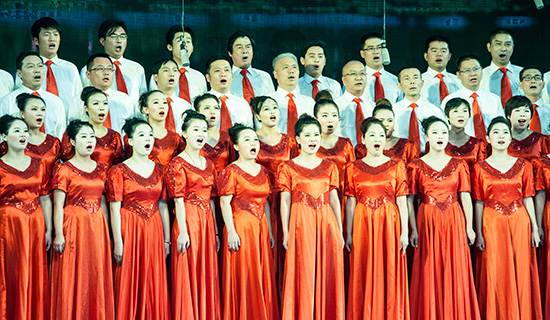 股份公司董事长、党委书记李长进,股份公司党委组织部部长丁荣昌等领导在现场观看员工歌咏比赛
