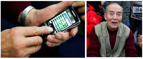 中国摄影手机报读者任侠专程赶到现场,老人称赞手机报丰富了其晚年生活,“每期手机报看过了都不舍得删除,有空就拿出来再看看”。