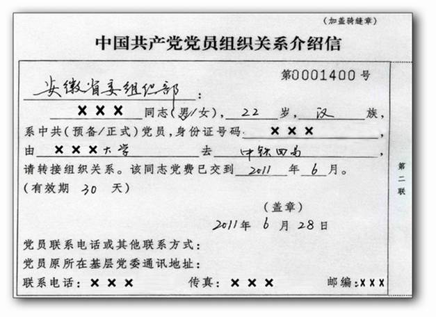 院校在安徽省外的毕业生组织关系转至“中共安徽省委组织部”,按如下格式转递: